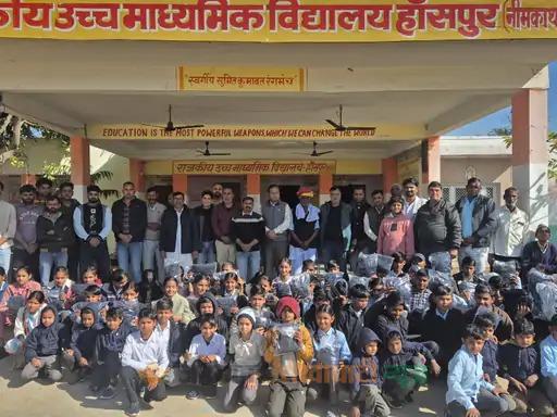 हांसपुर स्कूल के 152 विद्यार्थियों को मिले स्वेटर:भामाशाह साधुराम शर्मा परिवार ने ठंड से बचाव के लिए किए भेंट
