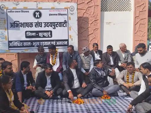 उदयपुरवाटी : उदयपुरवाटी बार संघ ने गुरुवार से अनिश्चितकालीन भूख हड़ताल और अनशन शुरू कर दिया है। संघ की मांग है कि गुढ़ागौड़जी तहसील से संबंधित राजस्व मामलों को झुंझुनूं उपखंड न्यायालय से उदयपुरवाटी उपखंड न्यायालय में स्थानांतरित किया जाए। बार संघ के अध्यक्ष एडवोकेट श्रवण सैनी ने घोषणा की है कि जब तक मामले स्थानांतरित नहीं होते, वे अन्न त्याग करेंगे।
