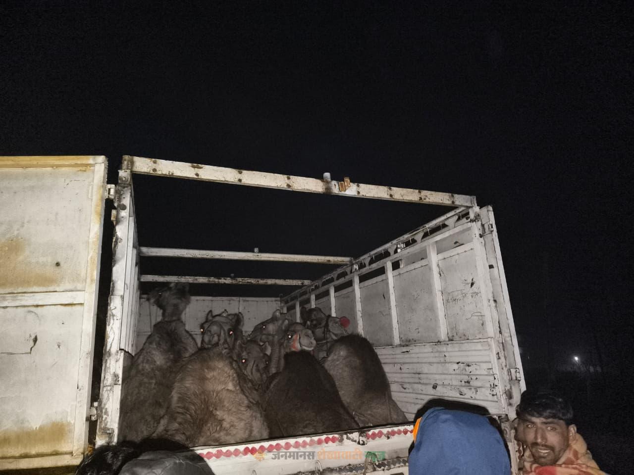 खेतड़ी में ऊंटों से भरा मिनी ट्रक पकड़ा, राजस्थान से मेवात ले जा रहे थे