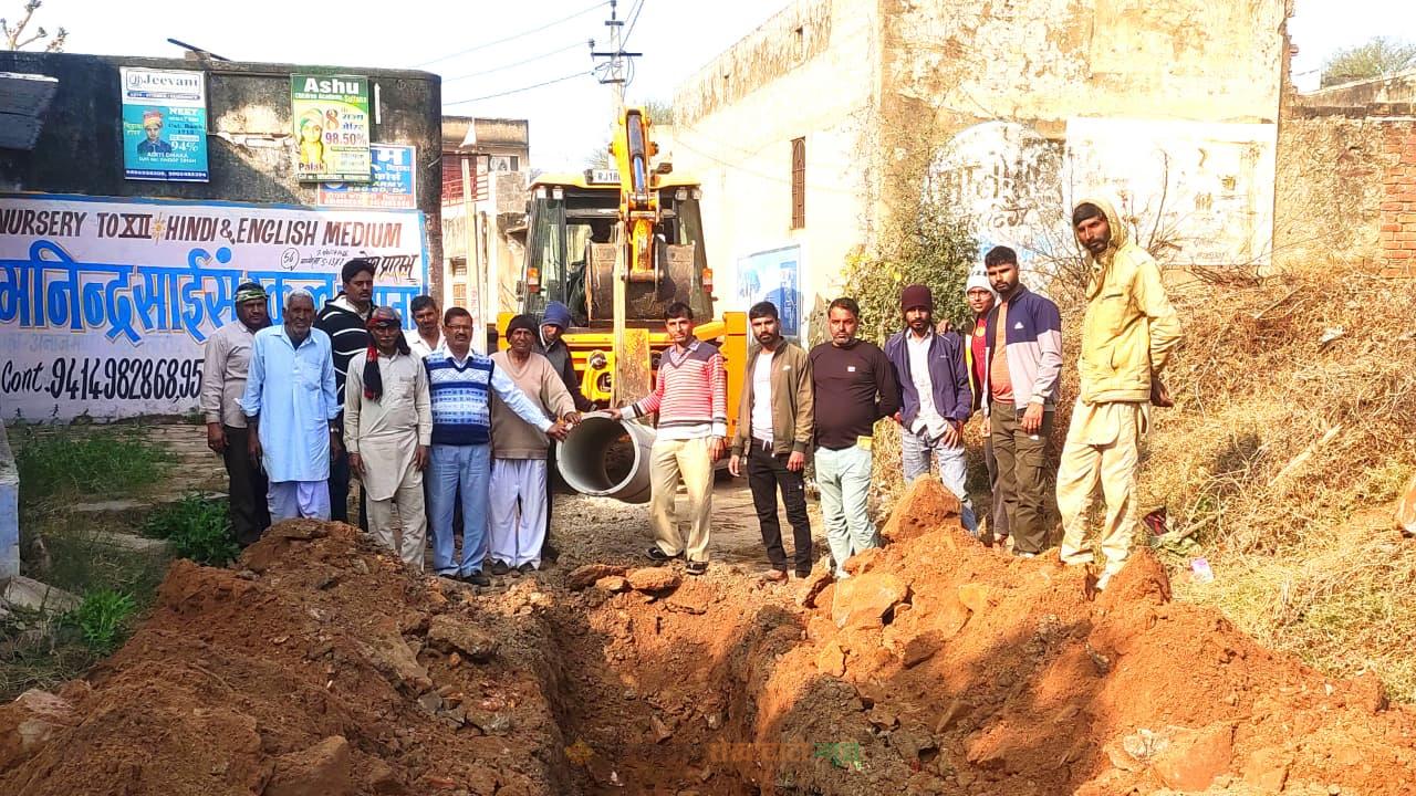 मानोता जाटान में वर्षों पुरानी कीचड़ व गंदगी की समस्या से मिलेगी स्थायी राहत, सीवरेज लाइन का कार्य शुरू