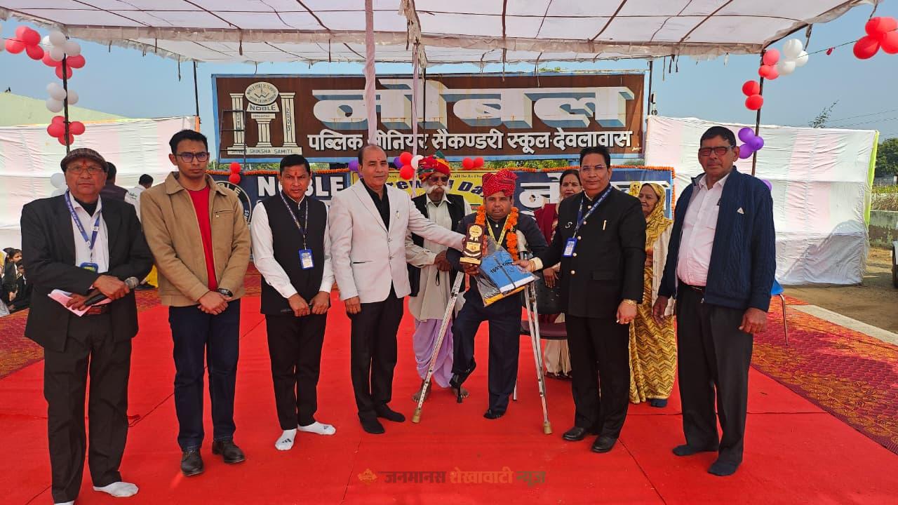 बुहाना : नोबल समूह प्रबंधन की ओर से कक्षा 12 के विद्यार्थियों के लिए विदाई समारोह का आयोजन गरिमामय एवं भावनात्मक माहौल में किया गया। समारोह के मुख्य अतिथि समाजसेवी एवं दिव्यांग भाई कुलदीप सेन उर्फ प्रधान (निवासी रायपुर) रहे। इस अवसर पर नोबल समूह प्रबंधन द्वारा मुख्य अतिथि का माला पहनाकर व साफा बंधवाकर सम्मान किया गया।