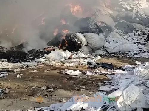सुजानगढ़ : सुजानगढ़ शहर के प्रगति नगर स्थित शनि मंदिर के पास सांवरमल जाट के खेत में रविवार शाम आग लग गई। यह आग फसल के कचरे से शुरू होकर खेत में ही बने पास के तिरपाल स्क्रैप गोदाम तक फैल गई, जिससे लाखों रुपए के नुकसान का अनुमान है।