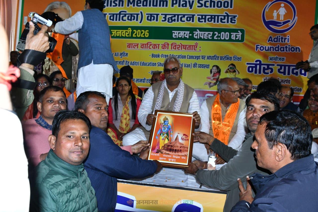 बुहाना : राजस्थान पंचायत शिक्षक संघ के बैनर तले बुहाना ब्लॉक के पंचायत शिक्षकों ने शिक्षा मंत्री मदन दिलावर के लांबी सहड़ आगमन के अवसर पर भगवान श्रीराम की प्रतिमा भेंट कर अपनी मांगों से संबंधित ज्ञापन सौंपा।