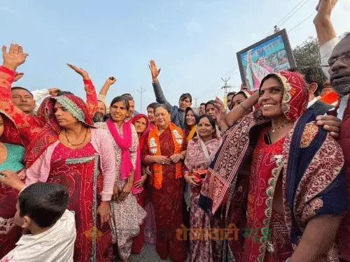 पूर्व सीएम वसुंधरा राजे का लक्ष्मणगढ़ में स्वागत:बीजेपी कार्यकर्ताओं ने ओढाई दुपट्टा और चुनरी, संगठन को मजबूत करने का किया आह्लान