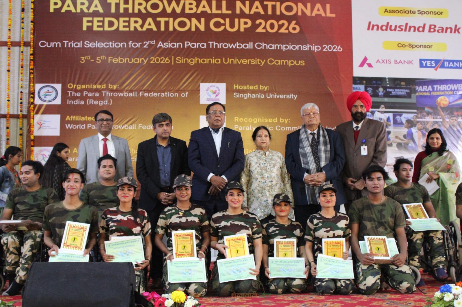 पैरा खिलाड़ियों को मिला राष्ट्रीय मंच: सिंघानिया विवि में पैरा थ्रोबॉल नेशनल फेडरेशन कप 2026 का भव्य आगाज