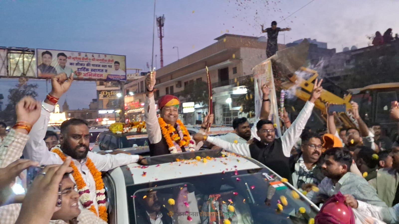 जगह-जगह भव्य स्वागत, जेसीबी से पुष्पवर्षा और तलवार भेंट