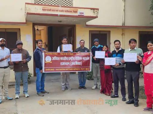 साथ ही आंकड़ों का हवाला देते हुए बताया कि सत्र 2020-21 से अब तक कुल 374 राज-सेस कॉलेज खोले जा चुके हैं। इनमें से लगभग 260 कॉलेजों में आज भी एक भी स्थायी संकाय सदस्य कार्यरत नहीं है, जो स्थिति की गंभीरता को दर्शाता है। वहीं प्रदर्शन के बाद शिक्षकों का एक प्रतिनिधिमंडल उपखंड कार्यालय पहुंचा और वहां तहसीलदार के माध्यम से प्रधानमंत्री, राज्यपाल और मुख्यमंत्री के नाम अलग-अलग ज्ञापन सौंपे। ज्ञापन में मांग की गई कि भर्ती परीक्षा कैलेंडर-2026 के तहत राज-सेस नियम-2023 में बदलाव कर 28,500 रुपये के नियत वेतन पर की जा रही ‘टीचिंग एसोसिएट’ की संविदा भर्ती को तत्काल रोका जाए।