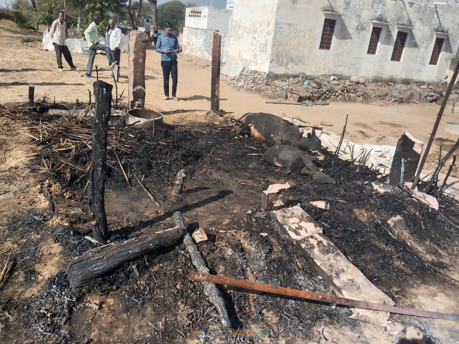 चूरू में भामासी गांव में छपरे में लगी भीषण आग:2 गाय जिंदा जलीं, आगजनी के कारणों का नहीं चला पता