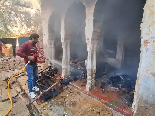 लक्ष्मणगढ़ में घर में लगी आग:घरेलू सामान और अनाज जला, मंदिर गई थी मकान मालकिन