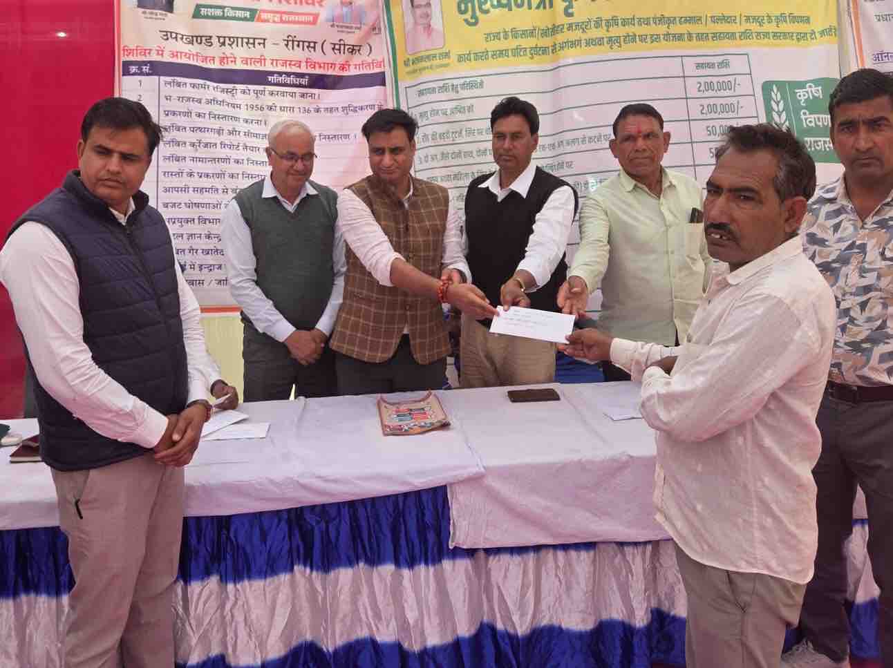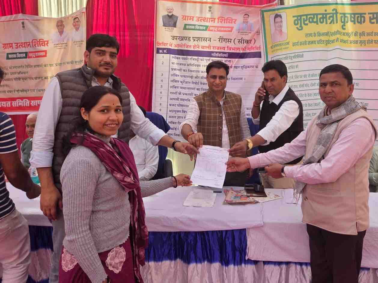 रींगस : रींगस के तपीपल्या ग्राम पंचायत कार्यालय में शनिवार को ग्राम उत्थान शिविर का आयोजन किया गया। इस शिविर में शाम तक विभिन्न विभागों के अधिकारियों ने मौके पर ही 100 से अधिक कार्यों का निस्तारण किया। राजस्व विभाग ने शिविर में महत्वपूर्ण भूमिका निभाई। एसडीएम बृजेश कुमार गुप्ता, तहसीलदार महेश कुमार ओला और रींगस सर्किल के पटवारियों ने 35 खाता दुरुस्ती, 10 सहमति विभाजन, 5 तरमीम शुद्धि और 166 के 20 प्रकरणों का मौके पर ही समाधान किया।
