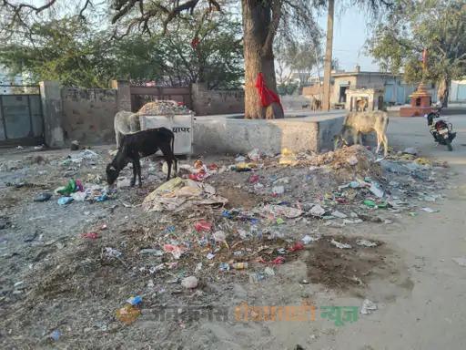 छापर के वार्ड 15-16 में कचरे का ढेर, लोग परेशान:पालिका की अनदेखी से आम रास्ते पर फैला कचरा