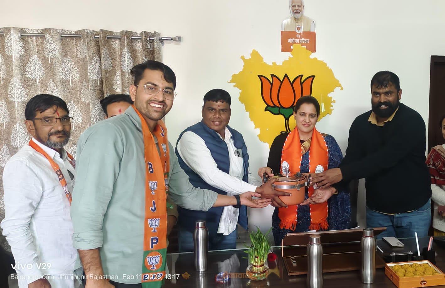 भाजपा जिला अध्यक्ष को मिट्टी का कुकर भेंट कर किया सम्मान
