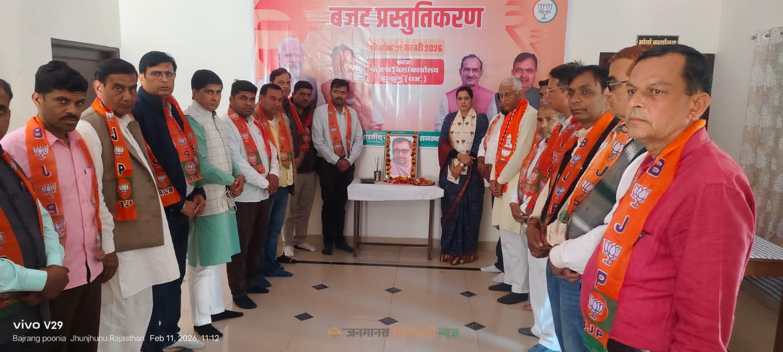 जिला अध्यक्ष हर्षिणी कुलहरी ने पंडित दीनदयाल उपाध्याय के जीवन चरित्र पर प्रकाश डालते हुए कहा कि वे राष्ट्रीय स्वयंसेवक संघ के प्रखर चिंतक एवं कुशल संगठनकर्ता थे। भारतीय जनसंघ के अध्यक्ष के रूप में उन्होंने भारत की सनातन विचारधारा को युगानुकूल रूप में प्रस्तुत करते हुए देश को एकात्म मानववाद की विचारधारा दी। उन्होंने अंत्योदय की अवधारणा के माध्यम से समाज के अंतिम पंक्ति में खड़े व्यक्ति तक विकास पहुंचाने का संदेश दिया। वे समावेशी सोच के समर्थक थे और एक मजबूत व सशक्त भारत का सपना देखते थे। कार्यक्रम के अंत में सभी कार्यकर्ताओं ने राजस्थान सरकार द्वारा प्रस्तुत बजट का भी सामूहिक रूप से श्रवण किया।
