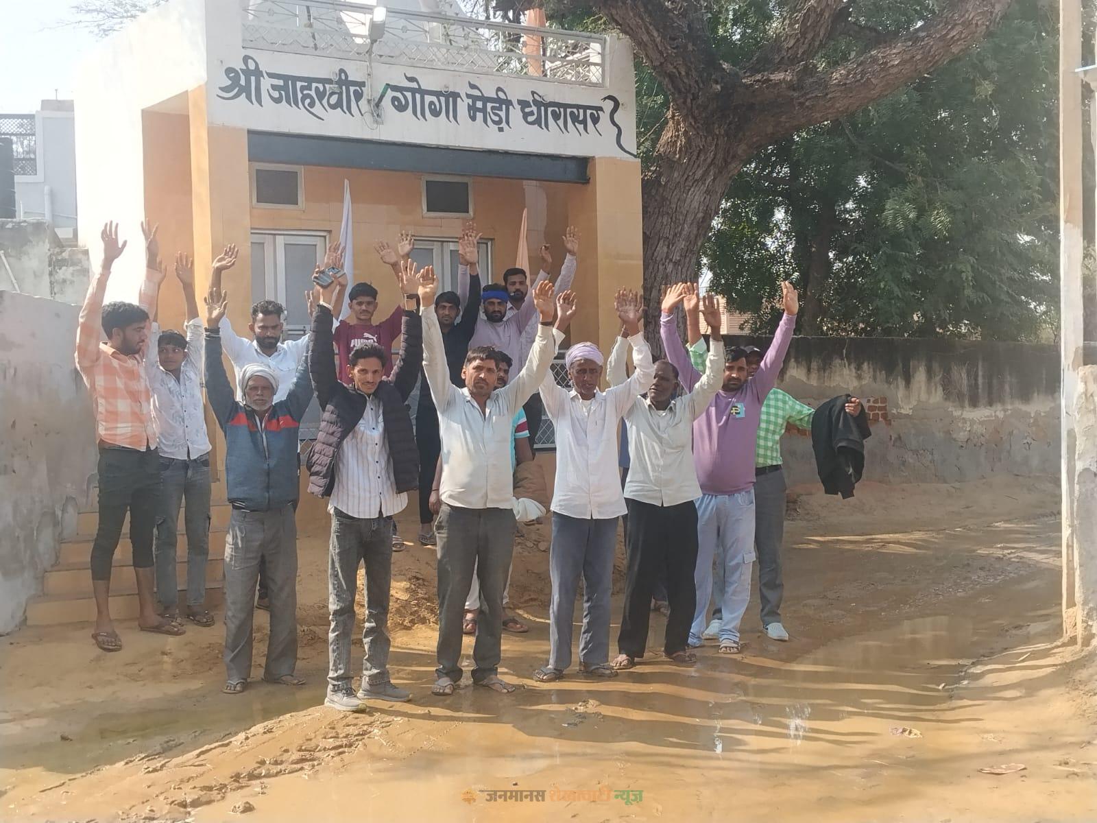 धीरासर गांव के मुख्य चौक से लेकर मंदिर तक जलभराव को लेकर विरोध प्रदर्शन