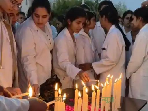 चूरू मेडिकल कॉलेज में पुलवामा शहीदों को दी श्रद्धांजलि:विधायक हरलाल सहारण के नेतृत्व में कैंडल मार्च निकाला