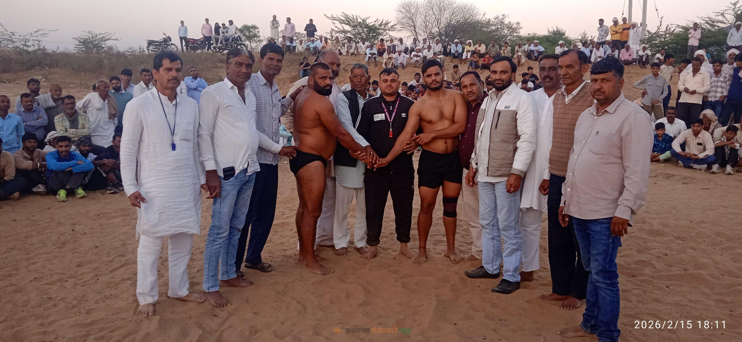 शाम को आयोजित कुश्ती प्रतियोगिता में आसपास के गांवों सहित दूरदराज से आए पहलवानों ने अपने दांव-पेच दिखाए। विजेता पहलवानों को नगद पुरस्कार देकर सम्मानित किया गया। इस अवसर पर सूबेदार रामोतार, कानाराम मणकस, जीवणराम कसाना, कैप्टन मदन बजाड़, राजेश कसाना, अशोक कुमार कसाना, कैप्टन नोरंग राम, राजू जांगिड़, सुभाष कुमावत, राजू मरोड़िया, रामोतार मास्टर, विक्रम कसाना, रामेश्वर बजाड़, ऊंकार खटाना, शीशराम मरोड़िया सहित अनेक ग्रामीण मौजूद रहे।