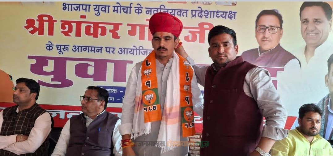 चूरू : भारतीय जनता पार्टी युवा मोर्चा राजस्थान के प्रदेशाध्यक्ष शंकर गोरा बुधवार को चूरू में पूर्व नेता प्रतिपक्ष राजेन्द्र राठौड़ के आवास पर आयोजित प्रेस कॉन्फ्रेंस के दौरान एक सवाल पर असहज नजर आए।
