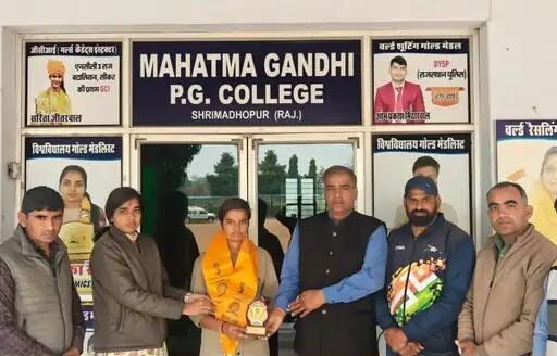 श्रीमाधोपुर : श्रीमाधोपुर कस्बे के महात्मा गांधी स्नातकोत्तर कॉलेज की छात्रा सुमित देवंदा का विश्वविद्यालय हैंडबॉल (महिला) टीम में चयन हुआ है। इस उपलब्धि पर कॉलेज परिसर में एक सम्मान समारोह आयोजित किया गया। कार्यालय सचिव राकेश शर्मा ने बताया कि छात्रा सुमित देवंदा एम.ए. फाइनल (राजनीति विज्ञान) की छात्रा है। वह पलसाना की रहने वाली है। सुमित देवंदा का चयन विश्वविद्यालय की महिला हैंडबॉल टीम में किया गया है।