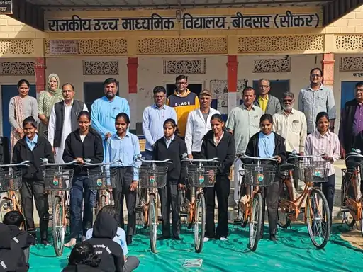 लक्ष्मणगढ़ : लक्ष्मणगढ़ के बीदसर गांव स्थित राजकीय उच्च माध्यमिक स्कूल (राउमावि) में बुधवार को छात्राओं को निशुल्क साइकिलें वितरित की गईं। ये वितरण मुख्यमंत्री निशुल्क साइकिल वितरण योजना के तहत कक्षा 9वीं की छात्राओं के लिए आयोजित समारोह में किया गया। कार्यक्रम की अध्यक्षता स्कूल के प्रधानाचार्य डॉ. राजकुमार ने की।