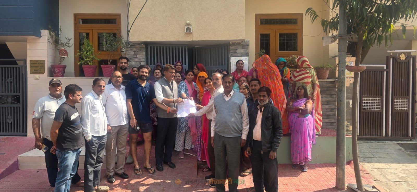 कार्यक्रम के दौरान मंडल मंत्री नारायण सिंह, दिनेश खंडेलवाल, लक्ष्य यादव, अभिमन्यु सिंह शेखावत, अभिराज सिंह सहित बड़ी संख्या में महिला-पुरुष मौजूद रहे। कॉलोनीवासियों ने जल्द कार्रवाई की उम्मीद जताई है।