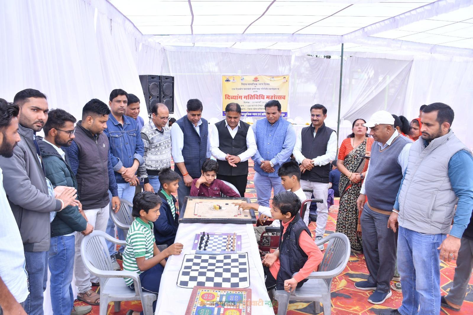 चूरू : युवा मामले एवं खेल विभाग के निर्देशानुसार जिला कलक्टर अभिषेक सुराणा के निर्देशन में शुक्रवार (विश्व सामाजिक न्याय दिवस) को जिला खेल स्टेडियम में एक दिवसीय दिव्यांग गतिविधि महोत्सव (एक दिवसीय समावेषी मनोरंजक गतिविधि कार्यक्रम) का आयोजन किया गया। सामाजिक न्याय एवं अधिकारिता विभाग के उप निदेशक नगेन्द्र सिंह राठौड़ ने बताया कि दिव्यांग व्यक्तियों को खेल और गतिविधियों के वातावरण से सहज और सकारात्मक रूप से परिचित कराने के उद्देश्य से गैर-प्रतिस्पर्धी, मनोरंजक और सहभागिता आधारित कार्यक्रम का आयोजन किया गया।