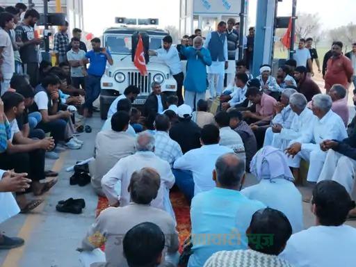 लम्बोर बड़ी टोल प्लाज़ा पर प्रदर्शन:20 किमी के दायरे के गांवों से टोल टैक्स नही लेने की मांग