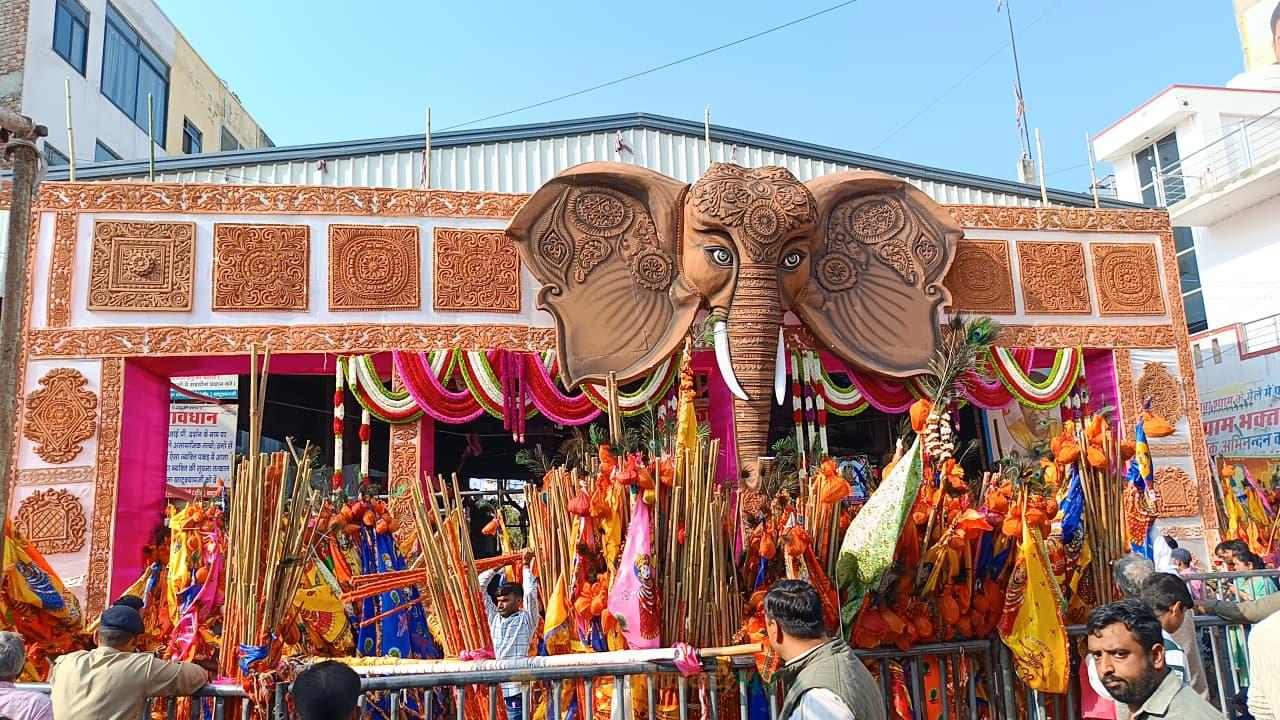 निशान लेकर झूमते-गाते बढ़ रहे भक्त