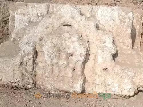 मंदिर के अवशेष मिले, मूर्तियों को सुरक्षित दबाया गया