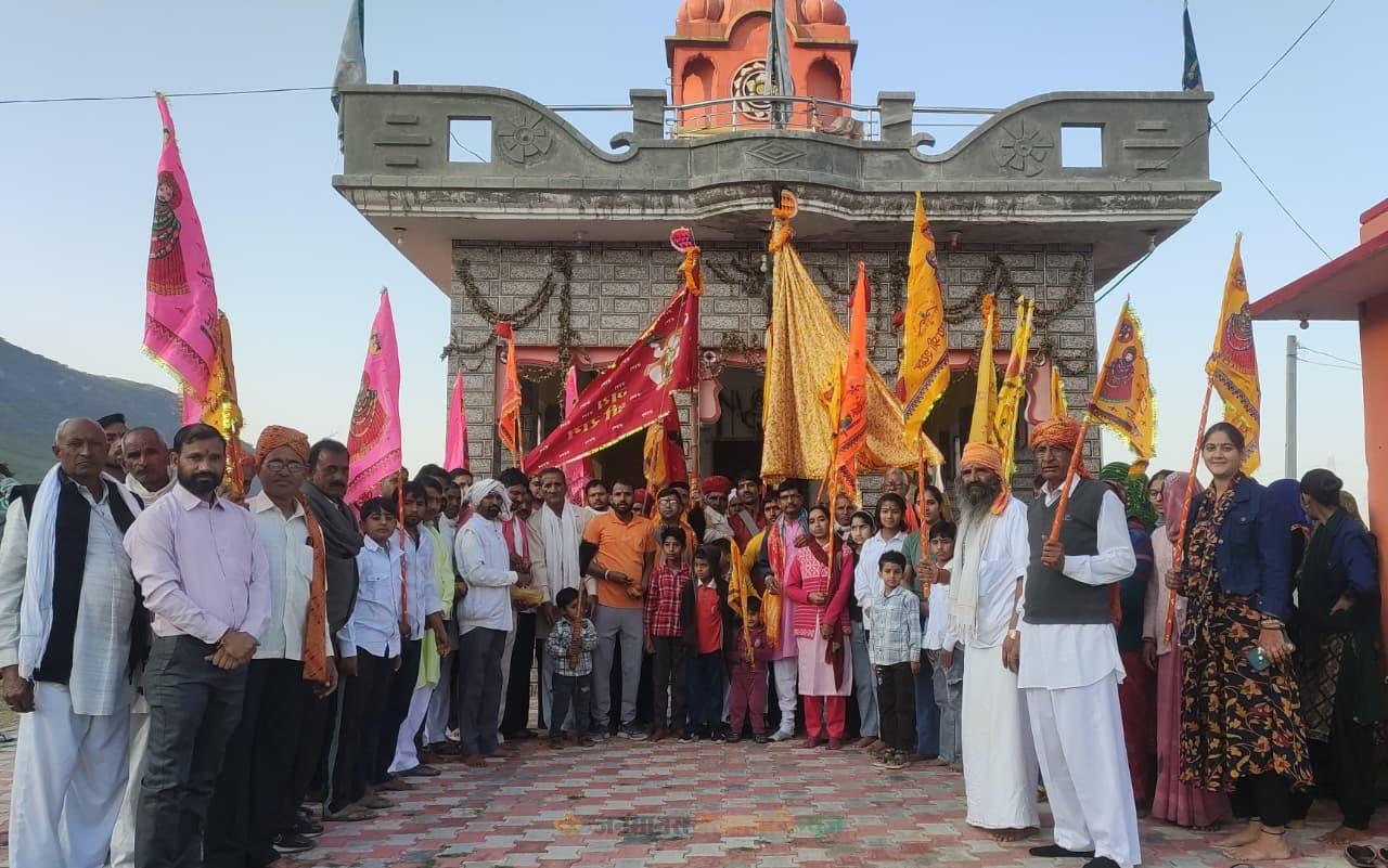 देवता से खाटू धाम के लिए 22वीं निशान पदयात्रा रवाना:151 श्रद्धालुओं का जत्था शामिल, जसरापुर में किया पुष्प वर्षा से भव्य स्वागत