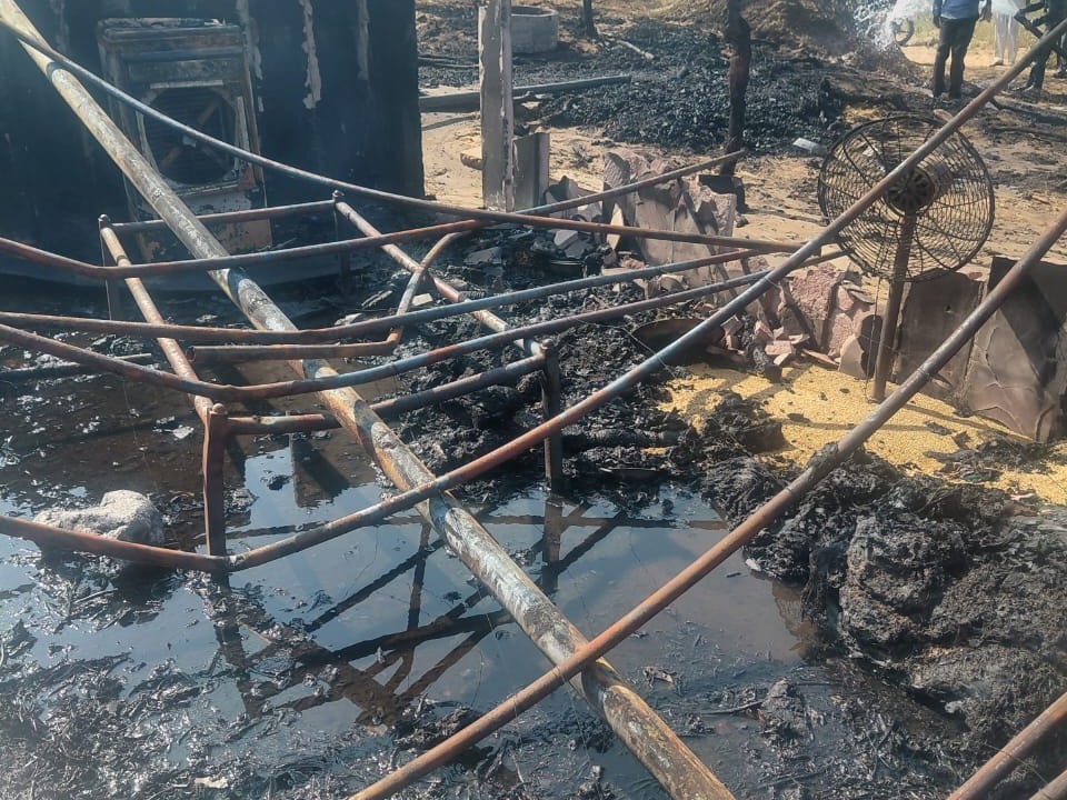 बीकमसरा रोही में ढाणी में अज्ञात कारणों से लगी आग:नकदी, अनाज और घरेलू सामान जला, ग्रामीणों ने की मुआवजे की मांग