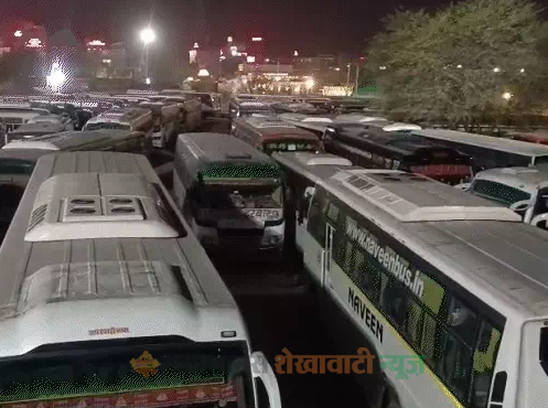 सीकर : राजस्थान में प्राइवेट बसों और टैक्सियों की हड़ताल से लाखों पैसेंजर्स फंस गए हैं। खाटूश्यामजीं में फाल्गुनी लक्खी मेले के बीच एक नोहरे में प्राइवेट बसों का जमावड़ा लगा है। लाखों श्रद्धालुओं की भीड़ के बाद भी बसें नहीं चलाई जा रही हैं, यात्री परेशान हो रहे हैं।खाटू से जयपुर जाने वाली प्राइवेट बसों को सिटी में जाने की अनुमति नहीं है। बस 14 नंबर बायपास स्थित हीरापुरा बस स्टैंड जाने का ही परमिट है। जिससे बाबा श्याम के फाल्गुनी लक्खी मेले के बीच श्याम भक्तों के लिए मुसीबत हो गई है।