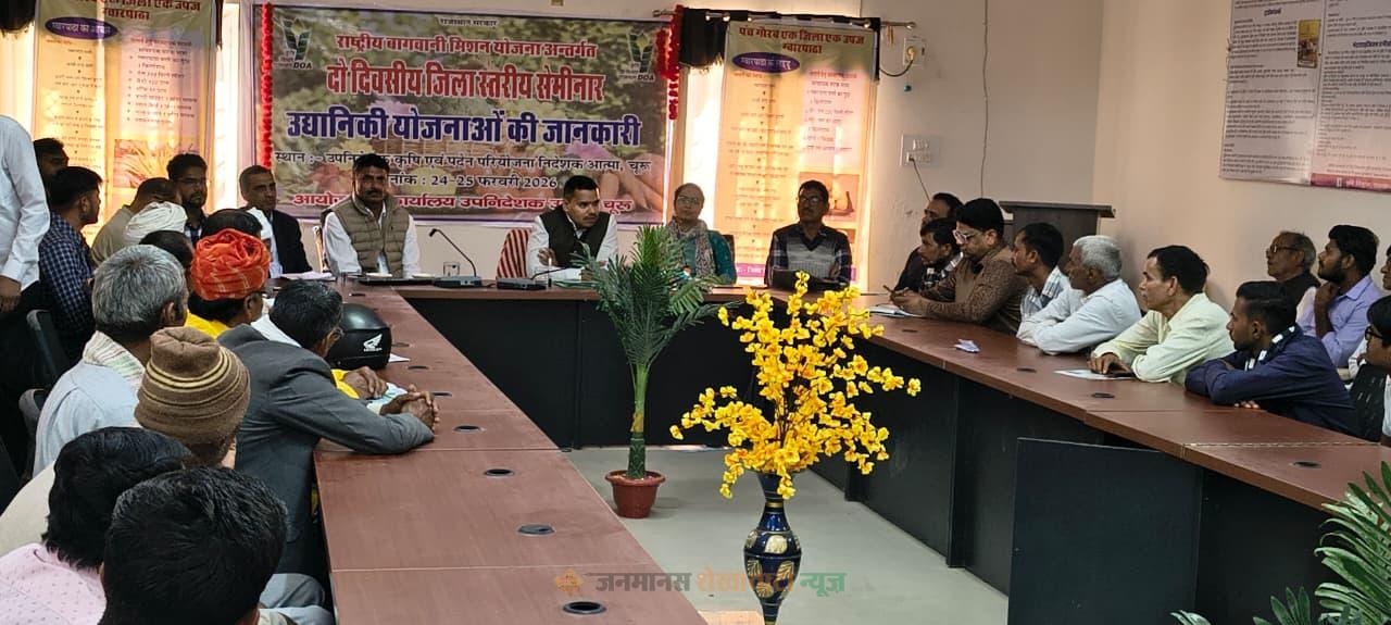 चूरू : जिला कलक्टर अभिषेक सुराणा ने बुधवार को जिला मुख्यालय स्थित आत्मा परियोजना सभागार में राष्ट्रीय बागवानी मिशन अंतर्गत आयोजित दो दिवसीय जिला स्तरीय सेमीनार का पर्यवेक्षण किया। इस दौरान उन्होंने उपस्थित किसानों से सीधा संवाद कर उद्यानिकी योजनाओं की विस्तृत जानकारी दी।
