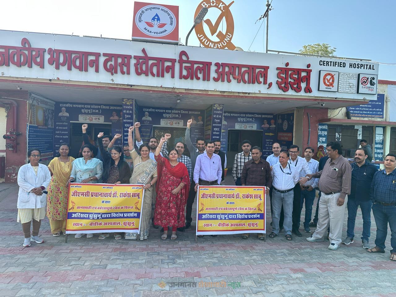 राजकीय मेडिकल कॉलेज, झुंझुनूं के प्राचार्य के खिलाफ चिकित्सकों का विरोध 12वें दिन भी जारी