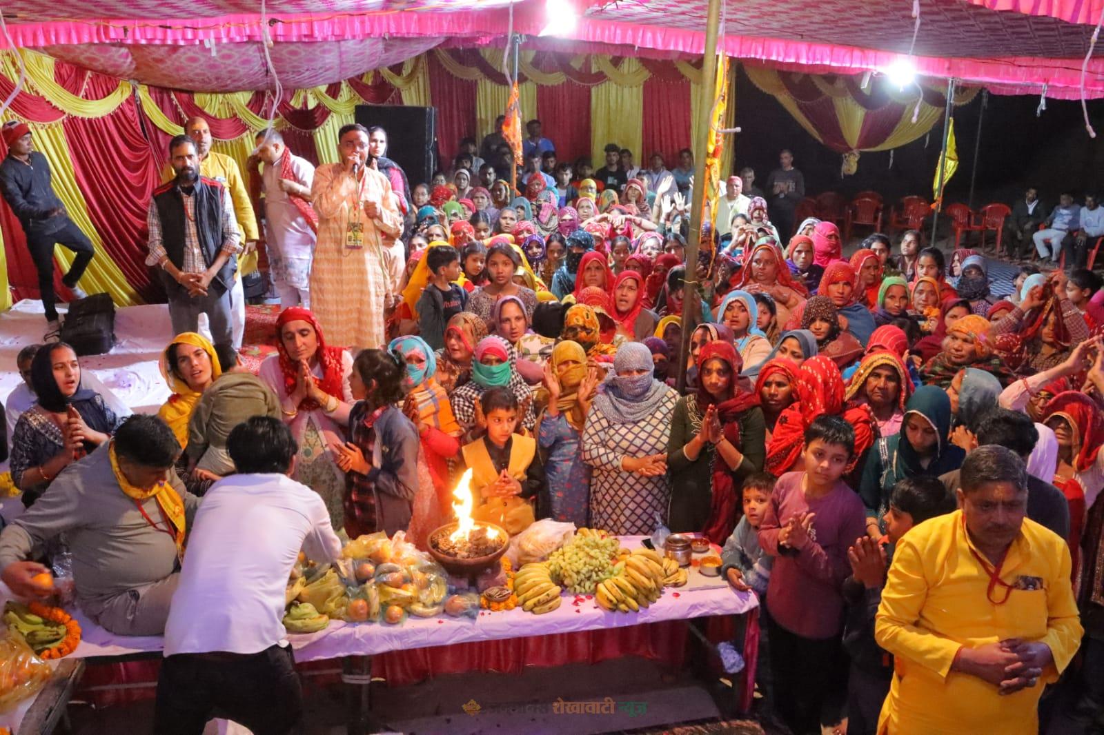 शिमला : नालपुर धाम स्थित खाटू श्याम मंदिर में 28 फरवरी को श्री श्याम सेवा समिति नालपुर की ओर से पांचवा श्याम सकीर्तन होली स्नेह मिलन समारोह का आयोजन किया गया। इस अवसर पर बाबा श्याम की आकर्षक झांकी भी सजाई गई। जिसको नगर भ्रमण करवाया गया तथा डीजे की धुन पर होली स्नेह मिलन किया गया। उक्त जानकारी बाबा के भक्त कृष्ण बंसल ने प्रदान की। कृष्ण बंसल ने बताया कि 28 फरवरी को प्रातः श्याम बाबा की प्रतिमा को नगर भ्रमण कराया गया इस अवसर पर सैकड़ो की तादाद में महिलाएं नाचती गाती बाबा के धाम पर निशान लेकर पहुंची तथा निशान अर्पित किए। कल रात्रि में बाबा के मंदिर स्थल पर विशाल जागरण का आयोजन किया गया जिसमें प्रसिद्ध कलाकारों ने भजनों के माध्यम से बाबा के मनमोहक भजन प्रस्तुत किये।