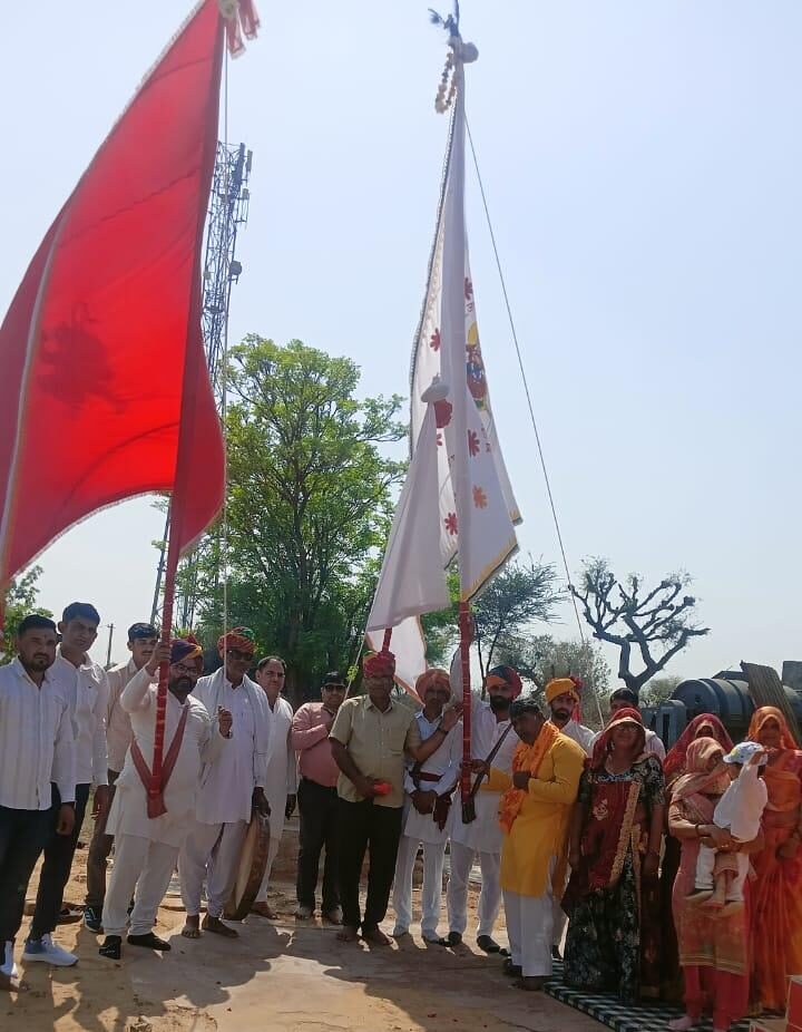दादा नाहर सिंह का निशान गिडानिया मंदिर में चढ़ाया:खुडोत गांव से शुरू हुई निशान यात्रा में ग्रामीणों ने हिस्सा लिया