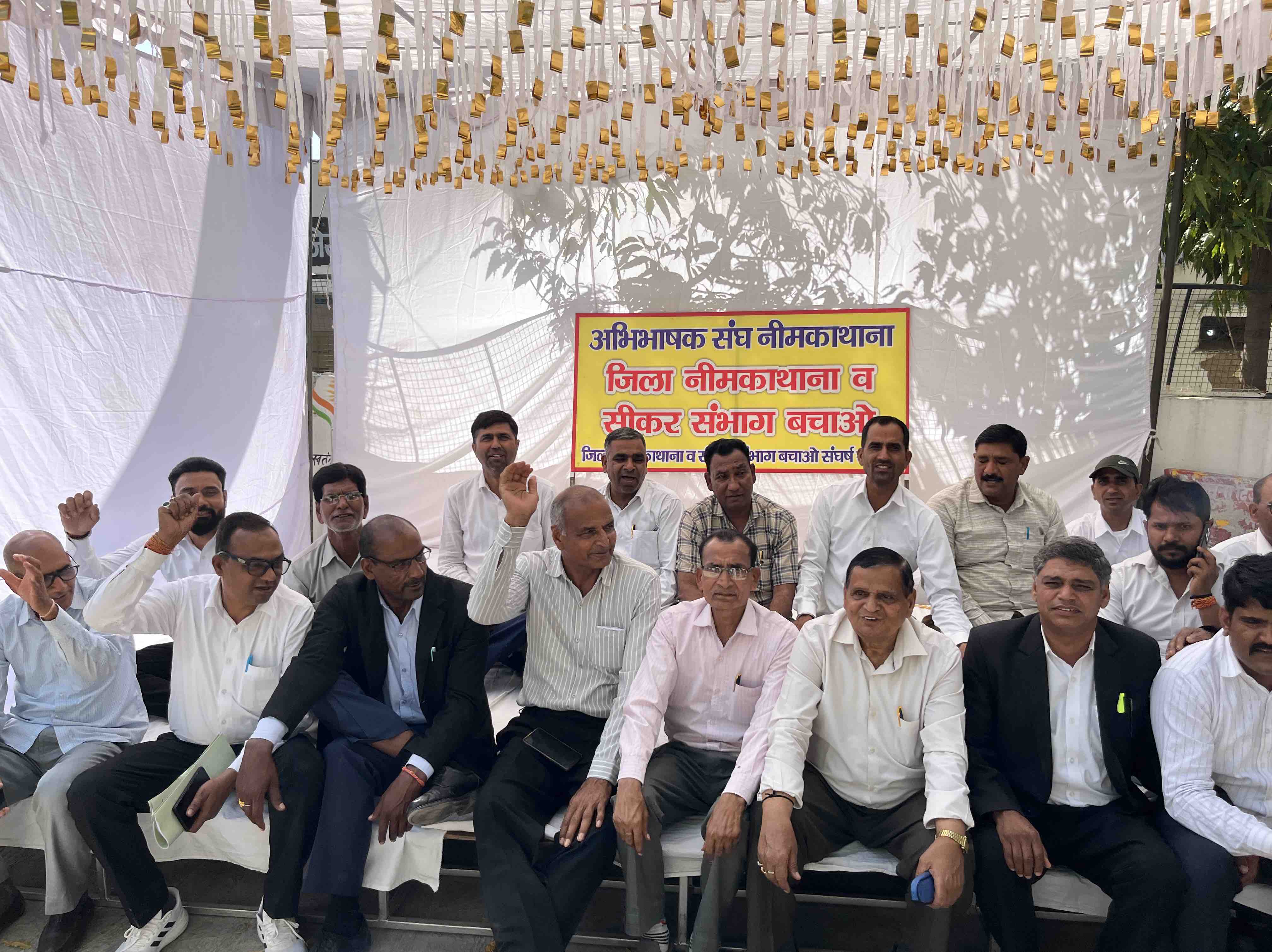 नीमकाथाना जिला, सीकर संभाग बहाली की मांग की:एसडीएम कार्यालय के बाहर अभिभाषक संघ ने दिया धरना