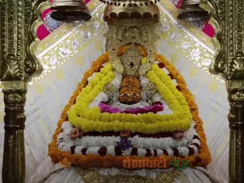 सीकर : सीकर जिले में विश्वविख्यात बाबा श्याम के तिलक शृंगार के बाद मंदिर के पट श्रद्धालुओं के लिए खोल दिए गए। पट बंद होने के बावजूद गुरुवार सुबह से मंदिर के 75 फीट एंट्री गेट पर श्याम भक्तों की भीड़ उमड़ पड़ी। वहीं पूरा परिसर जयकारों से गूंजता रहा। पट बंद होने के दौरान श्रद्धालुओं ने तोरण द्वार पर सेल्फी खिंचवाई। पट खुलते ही बाबा श्याम के नए शृंगार को देखने के लिए श्रद्धालुओं की भीड़ लग गई। श्याम भक्तों ने बाबा श्याम के जयकारे लगाते हुए दर्शन किए।