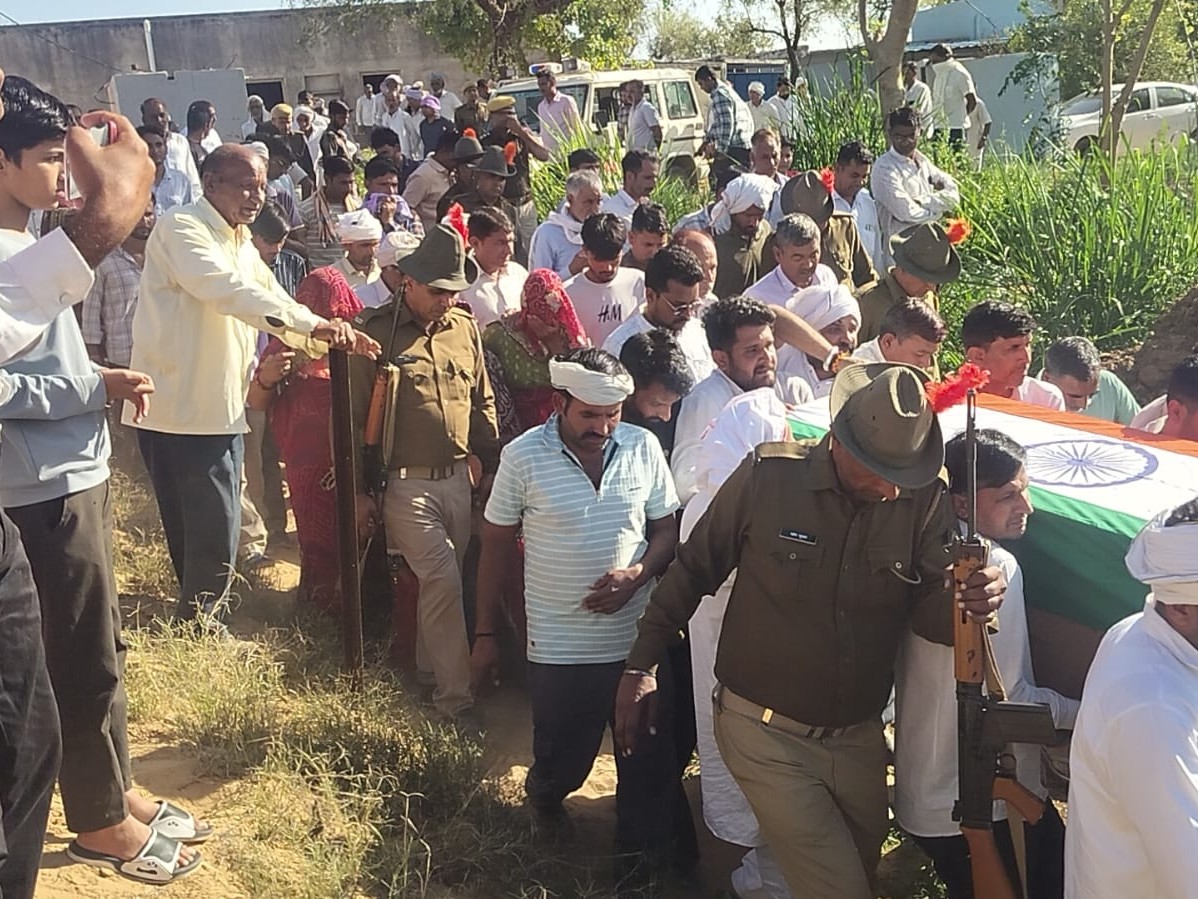 कैरू में RAC जवान कमलेश कुमार अंतिम संस्कार:राजकीय सम्मान के साथ हुआ, हार्ट अटैक से हुआ निधन; बीकानेर बटालियन मुख्यालय में तैनात थे