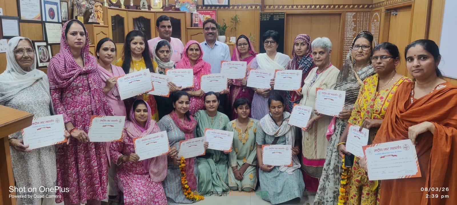 महिला दिवस पर जिला कलेक्टर ने सामाजिक कुरुतियों पर उत्कृष्ट कार्य करने वाली जाट महासंघ की महिलाओं को किया सम्मानित