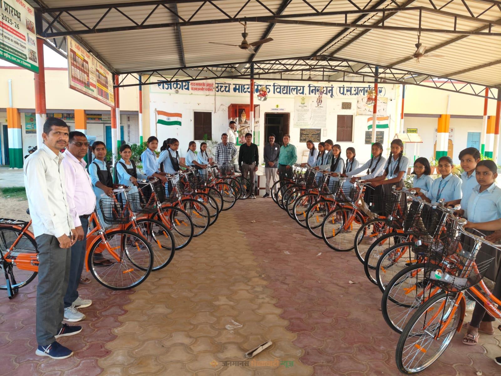 निराधनूं स्कूल में 22 छात्राओं को साइकिलें वितरित