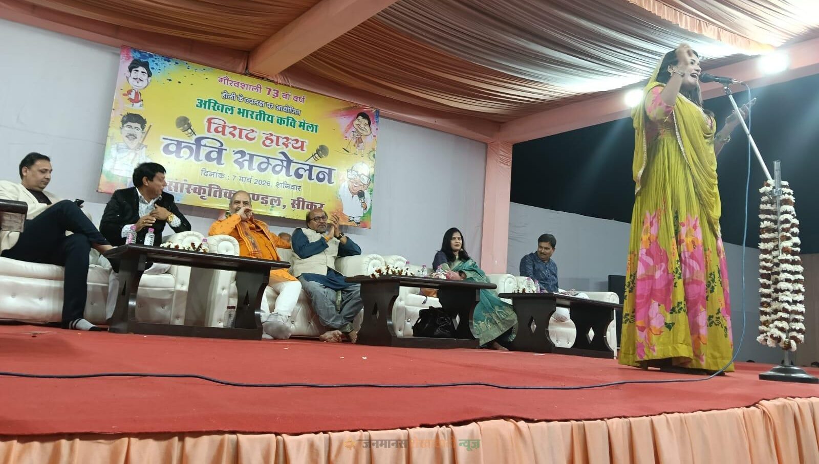 लोकप्रिय कवि देवकरण देव ने हास्य और व्यंग्य से भरपूर रचनाएं सुनाकर माहौल को और भी रंगीन बना दिया। वहीं हास्य और संचालन कला के लिए चर्चित हरीश हिंदुस्तानी ने मंच संचालन के साथ-साथ अपनी कविताओं से भी श्रोताओं का भरपूर मनोरंजन किया।