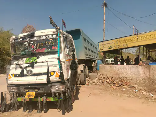 पाटन में बिना ड्राइवर दौड़ा ट्रेलर:दुकानों के सामने से गुजरते हुए कार-पेड़ से टकराया