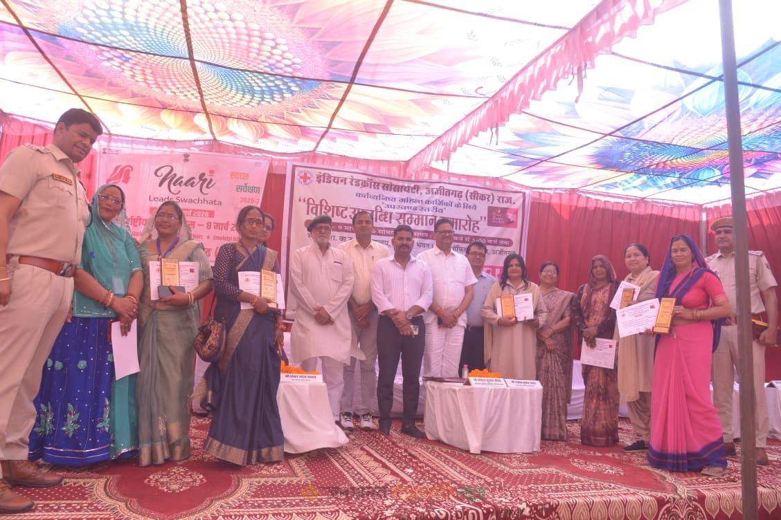 सीकर : इंडियन रेडक्रॉस सोसायटी के तत्वावधान में अंतरराष्ट्रीय महिला दिवस सप्ताह के तहत राजकीय बालिका उच्च प्राथमिक विद्यालय में कर्तव्यनिष्ठ महिला सम्मान एवं जागरूकता कार्यक्रम आयोजित किया गया। कार्यक्रम में नीमकाथाना के अतिरिक्त जिला कलक्टर भागीरथ साख मुख्य अतिथि रहे। कार्यक्रम की अध्यक्षता राजस्थान शिक्षा परिषद की उपनिदेशक दीपा मुंडोतिया ने की, जबकि विशिष्ट अतिथि के रूप में नीमकाथाना के अतिरिक्त पुलिस अधीक्षक लोकेश मीणा और श्रीमाधोपुर तहसीलदार स्नेहलता राजोरिया उपस्थित रहीं।