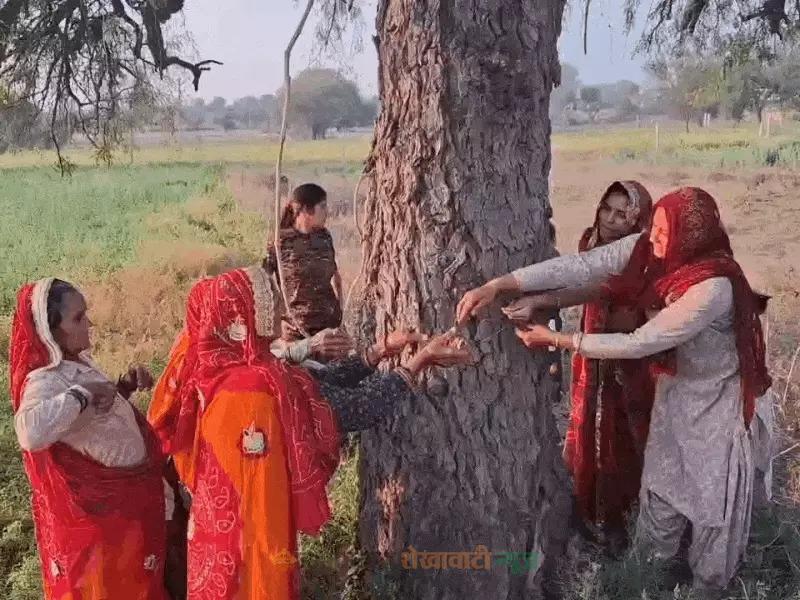 शीतलाष्टमी के अवसर पर महिलाओं ने समूह बनाकर खेजड़ी के पेड़ की पूजा भी की। ग्रामीण मान्यता के अनुसार पूजा के बाद खेजड़ी की छाल का छोटा हिस्सा घर लाना शुभ माना जाता है। ग्रामीणों का विश्वास है कि खेजड़ी की यह छाल घर में सकारात्मकता, शांति और समृद्धि लाती है। यह परंपरा प्रकृति के प्रति सम्मान और पर्यावरण संरक्षण का भी संदेश देती है।