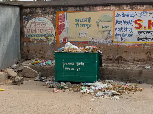 ओवरफ्लो कचरा पात्रों से निकलकर कचरा सड़कों पर बिखर रहा है, जिसे गोवंश भी खा रहे हैं, जिससे स्वास्थ्य और पर्यावरण संबंधी चिंताएं बढ़ रही हैं।