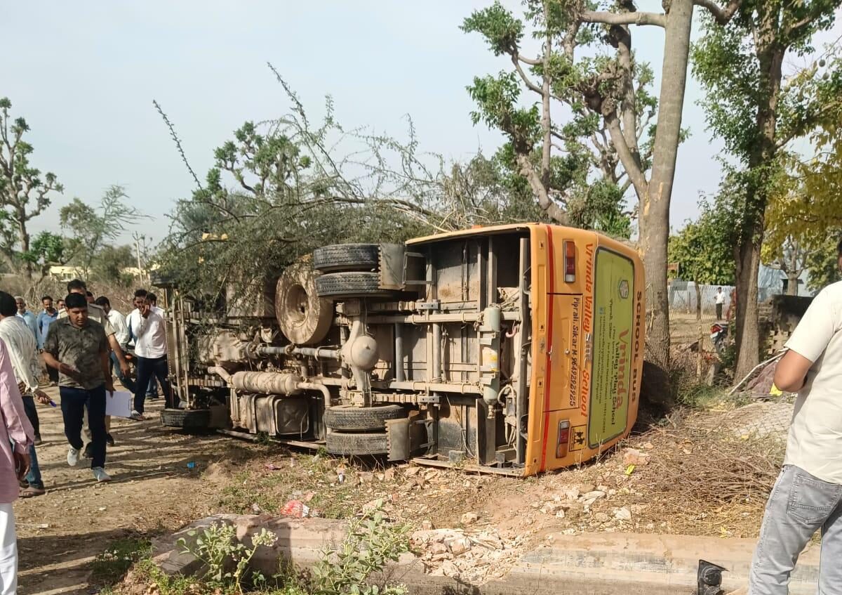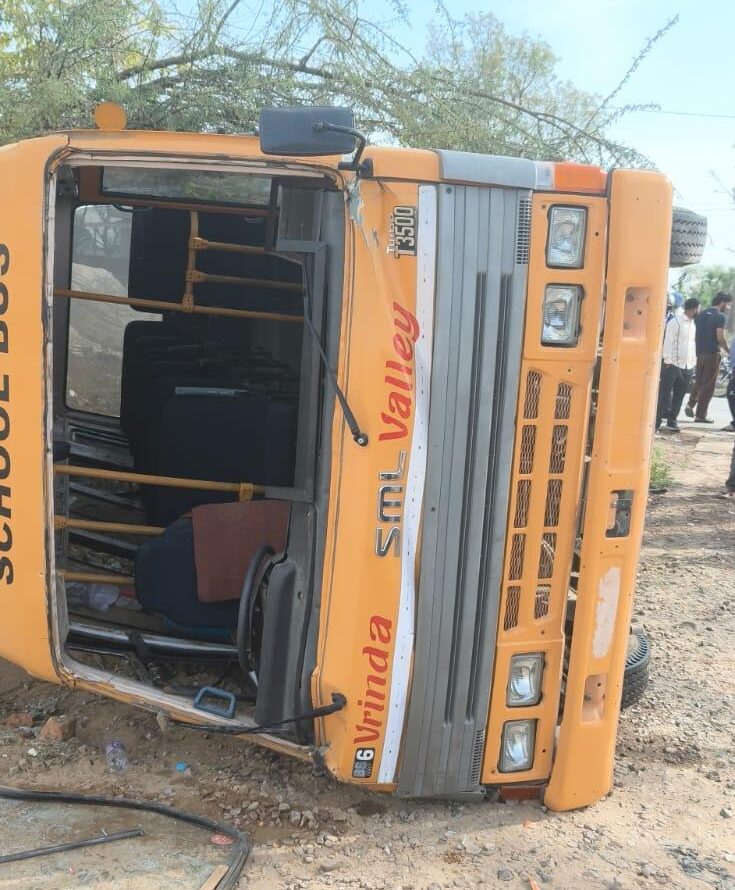 SHO बुद्धिप्रसाद ने बताया कि दोनों बस वृंदा वैली की है। बच्चों को घर से स्कूल लेकर जा रही थी। बस दुर्गापुरा नाड़ी जोहड़ी के पास मुख्य सड़क की तरफ आने वाले रास्ते के पास पहुंची और साइड से टकरा गई। एक बस टकराकर के बाद नीचे सड़क की तरफ पलट गई। दूसरी बस के ड्राइवर ने अचानक ब्रेक लगाया तो बच्चों के सिर व मुंह आगे सीटों के जा भिड़े और चोट लग गई।