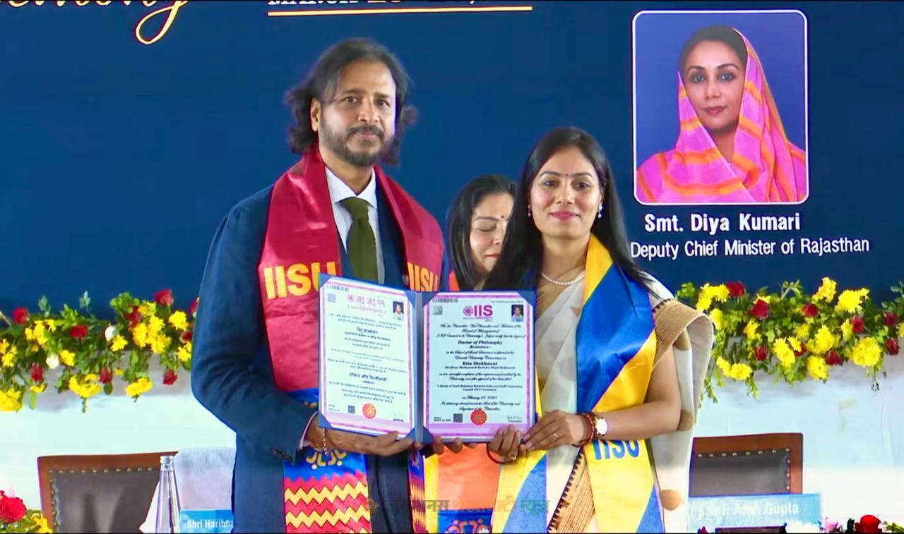 चूरू : स्वर्गीय सांसद मोहरसिंह राठौड़ की पौत्रवधू तथा वरिष्ठ कांग्रेसी नेता पृथ्वीसिंह राठौड़ की पुत्रवधू ऋतु शेखावत को अर्थशास्त्र विषय में शोध कार्य के लिए डॉक्टरेट की उपाधि प्रदान की गई। जिला मुख्यालय स्थित IIS (Deemed to be University) के 11वें दीक्षांत समारोह में उन्हें यह उपाधि उनके शोध विषय “भारत और खाड़ी सहयोग परिषद देशों के बीच व्यापार संबंधों का अध्ययन” पर प्रदान की गई।