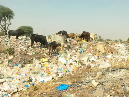 प्लास्टिक और गंदगी खाने से इन पशुओं के बीमार होने का खतरा लगातार बना हुआ है। खुले में पड़ा कचरा और उस पर डेरा जमाए पशु, क्षेत्र में सफाई व्यवस्था की निगरानी के अभाव को दर्शाते हैं।