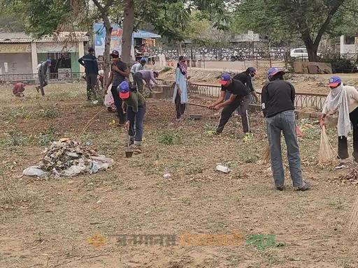खेतड़ीनगर में स्वयंसेवकों ने पार्क में किया श्रमदान:सफाई को लेकर किया जागरूक, डस्टबिन में कचरा डालने का संदेश