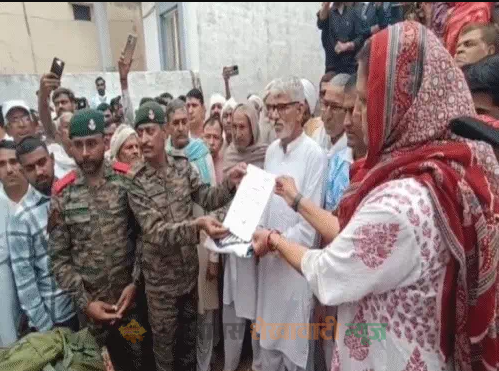 तिरंगा यात्रा गांव में होते हुए शहीद के घर पहुंची, जहां सेना के अधिकारियों ने शहीद के पिता प्रदीप कुमार पूनिया को सम्मानपूर्वक तिरंगा सौंपा।